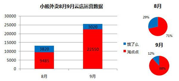 图:伍道家(小熊外卖)淘点点、饿了么云店8月9月运营数据